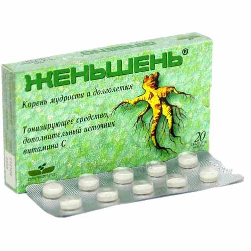 1 таблетка содержит экстракт женьшеня; в упаковке 20 шт.